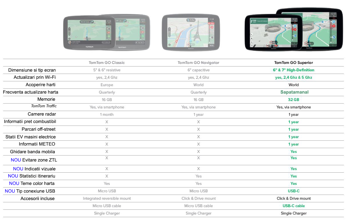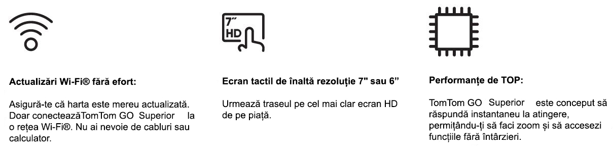 TomTom Go Superior 7" (2025) – GPS Premium pentru masini sub 3.5 tone, cu hărți mondiale actualizate pe viață, trafic live și alerte radar. Suport tehnic în limba română 24/7 și șansa să-l primești gratuit la tombola anuală.