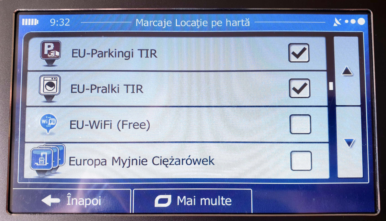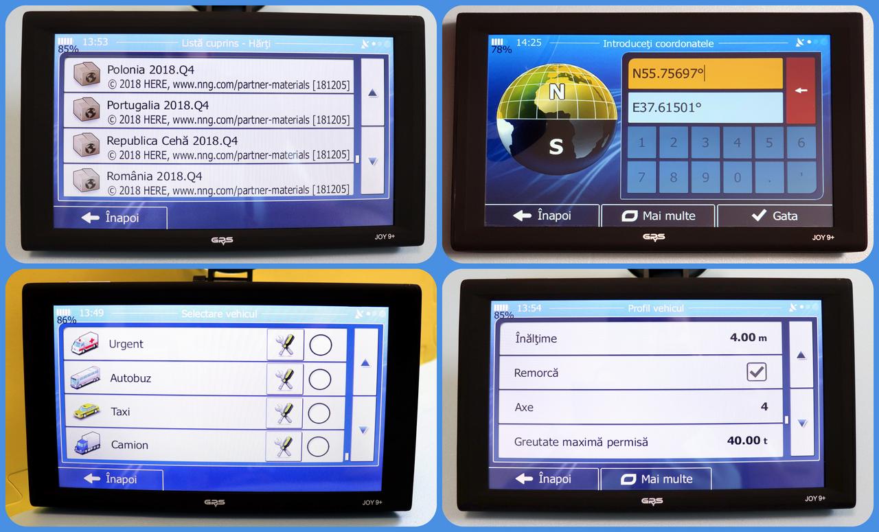 Functii Speciale: Rute dedicate pentru camioane si vehicule mari Alerte ADR, restrictii inaltime, tonaj si gabarit Puncte de interes (POI) pentru soferi profesionisti Navigatie 3D si comenzi vocale Planificare trasee cu puncte intermediare