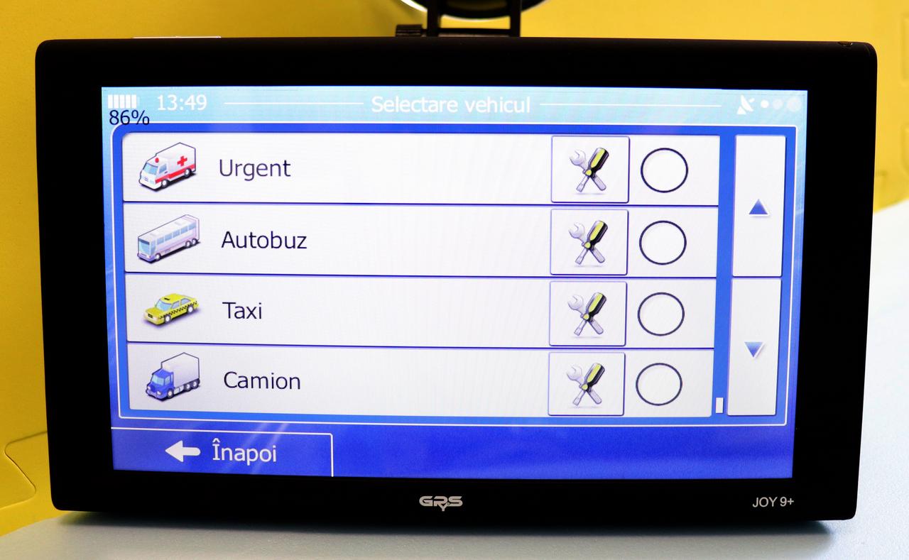 Dimensiuni Vehicul: setabile in aplicatie (inaltime, latime, lungime, greutate, tip marfa)