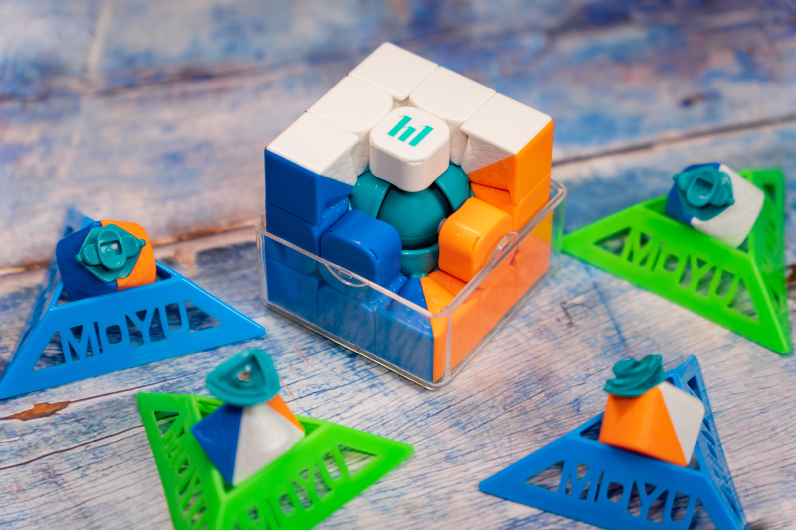 Accesorii Incluse: Cutie plastic de protecție / transport, Cutie accesorii reglaje (șurubelniță, suporturi), Breloc minicub MoYu funcțional (3 cm), Instrucțiuni (2 bucăți)